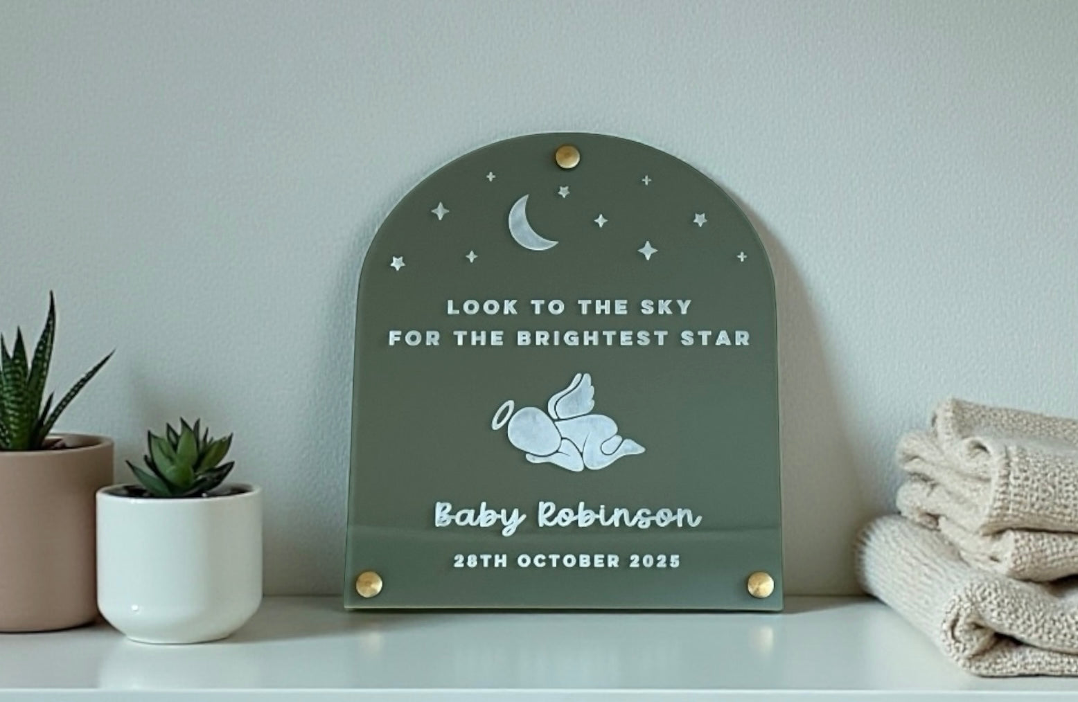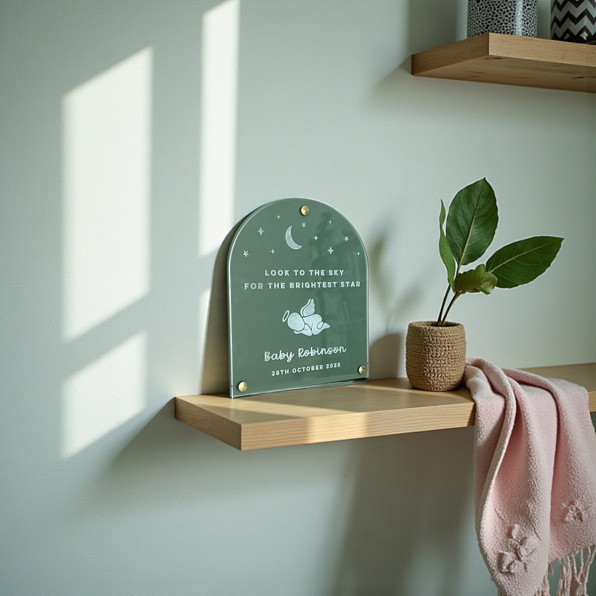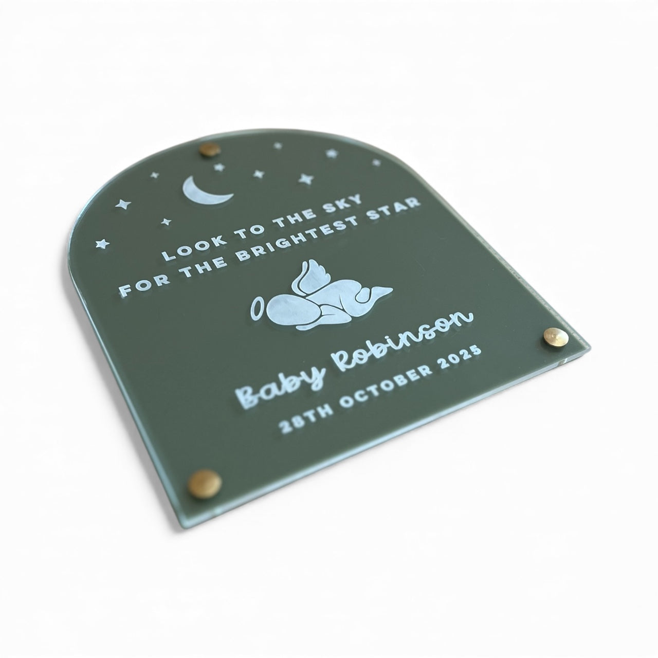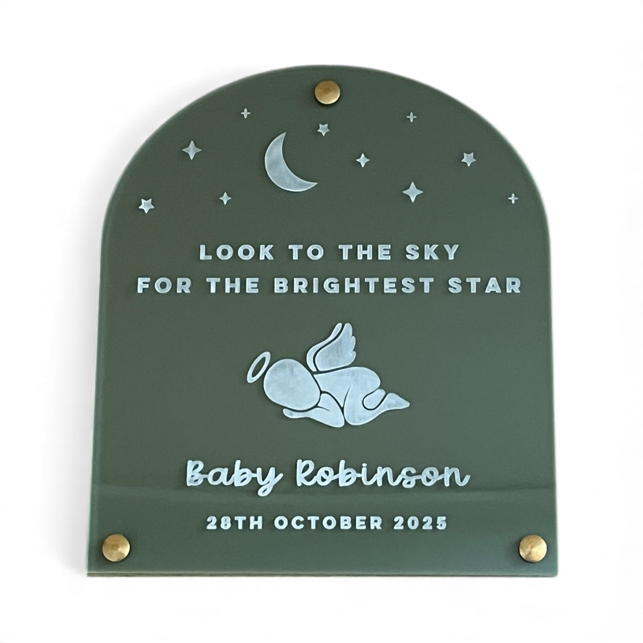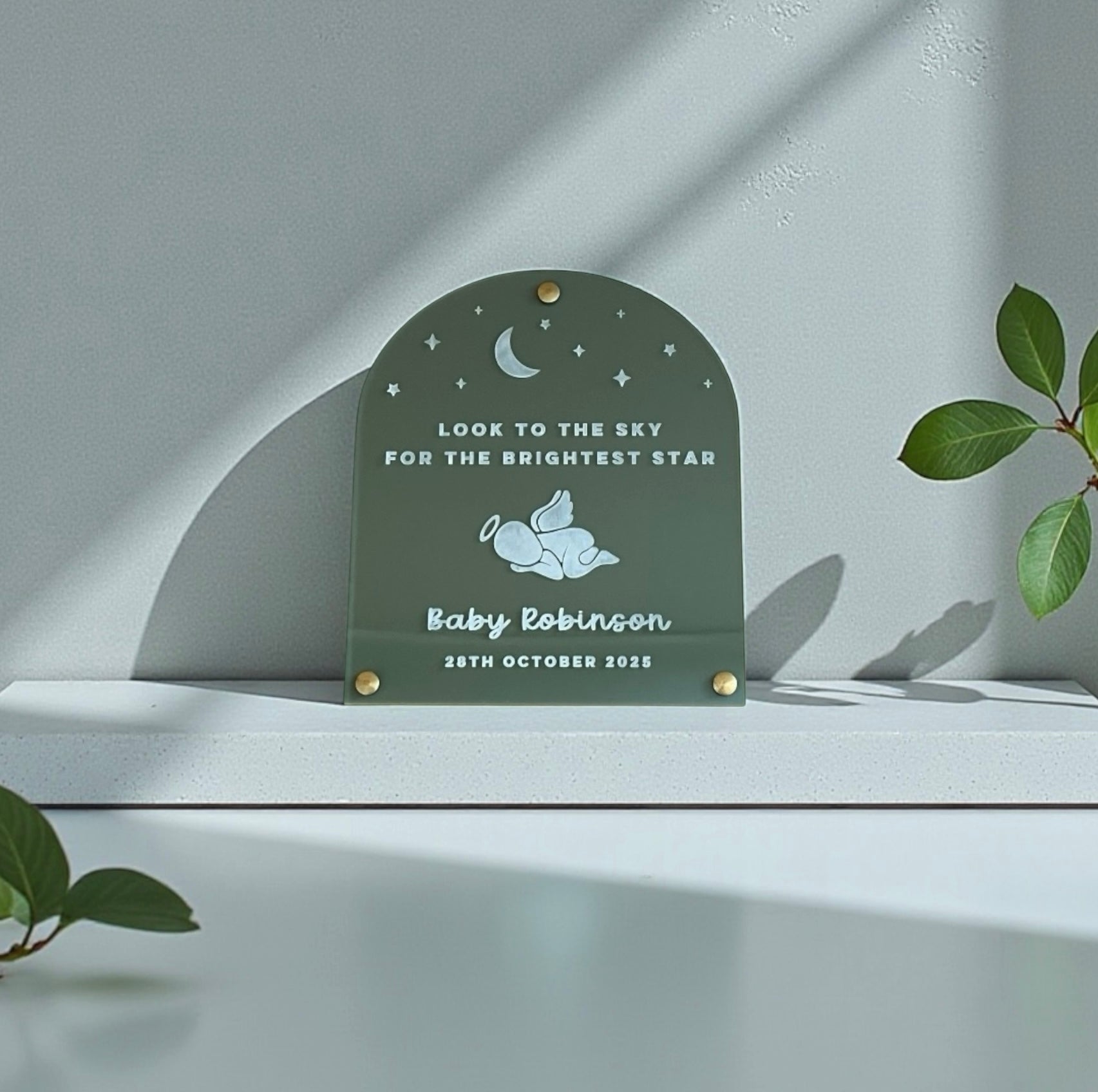 Our baby memorial plaque is a beautiful keepsake to honour a precious little one. Personalised with your angel baby's name and date it serves as a comforting remembrance gift for grieving families and a beautiful tribute to a life forever cherished.