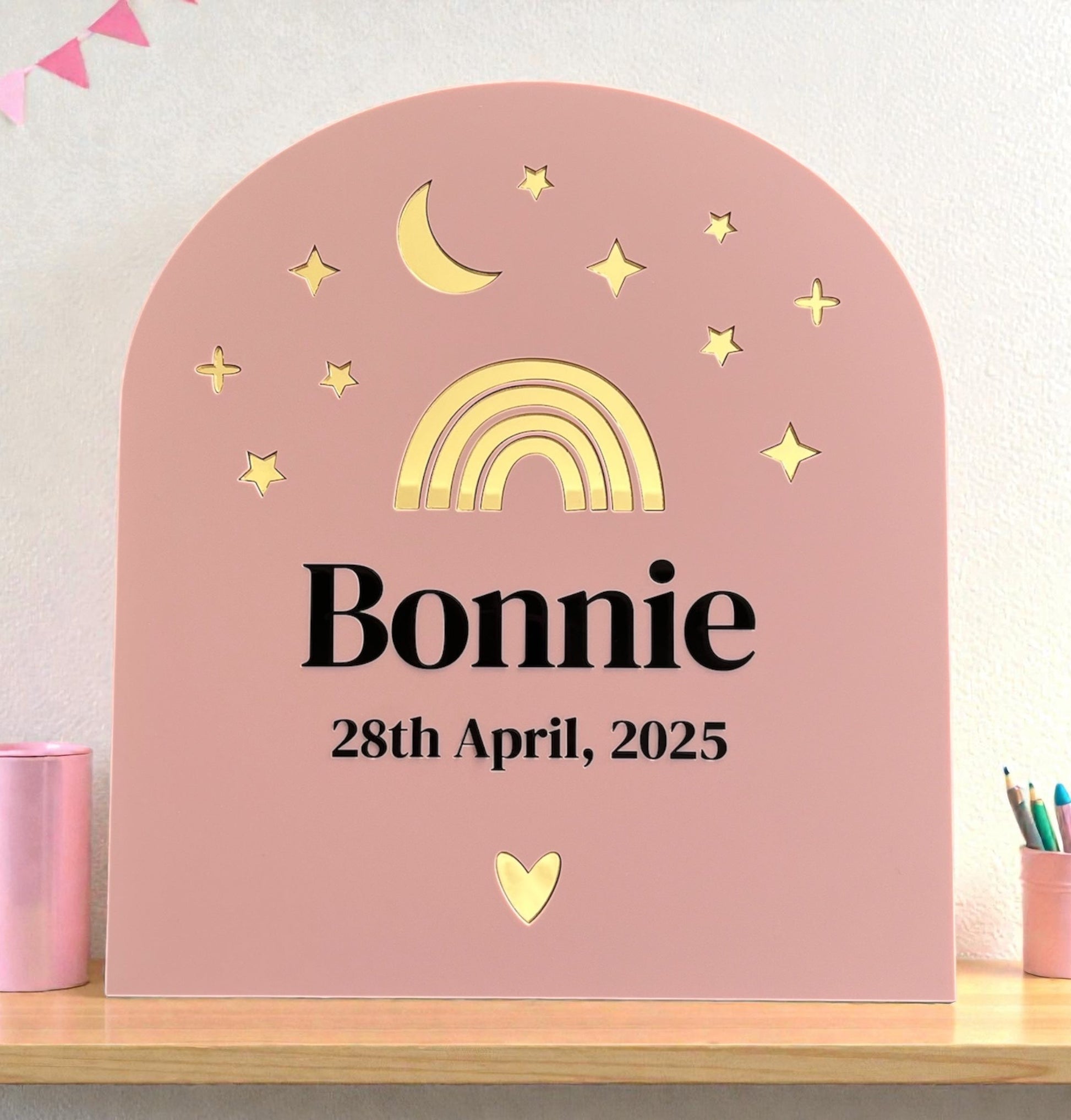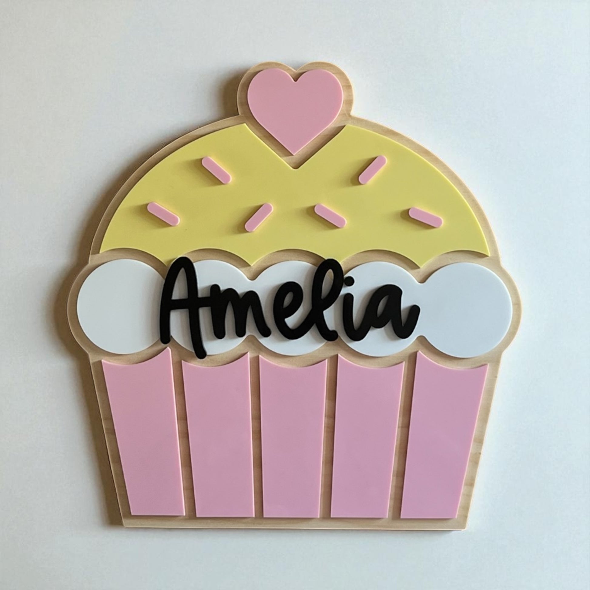 Our custom cupcake design will be the cutest addition to your little one's nursery or bedroom. Made from quality pine plywood and double-layered acrylic, this truly unique piece has a 3D appearance and is personalised with your child's name and two colours of your choice. Make your child's space extra special with this delightful, personalised decor!
